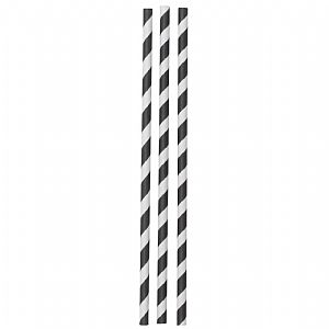 Pappírsrör Rendur Svört/Hvít 12st